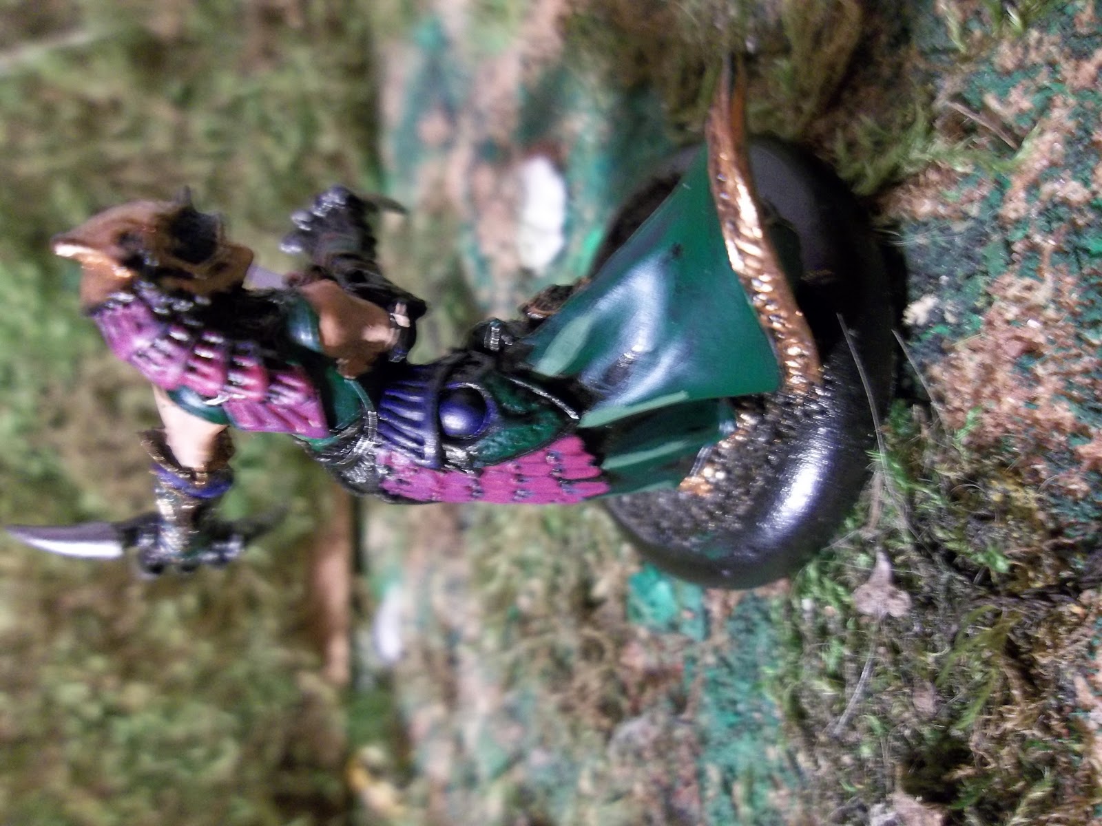 This is the first time I painted hordes models, the first idea of a colour scheme was dark angels green, regal blue and warlock purple (the customer wanted to shy away from the typical red and gold scheme). A lot of these pictures are still WIP (all are really, the base isn't done).
